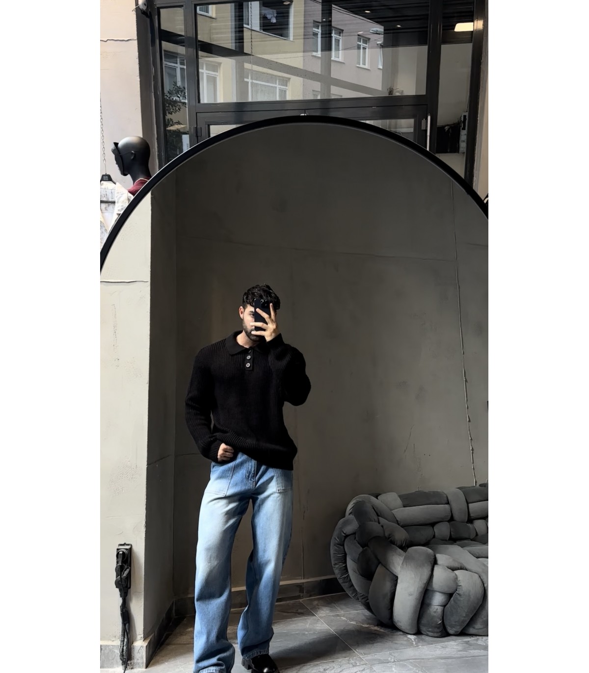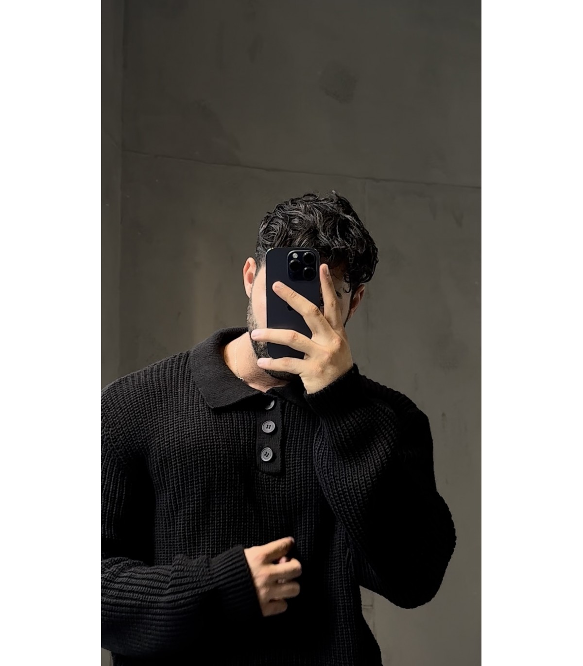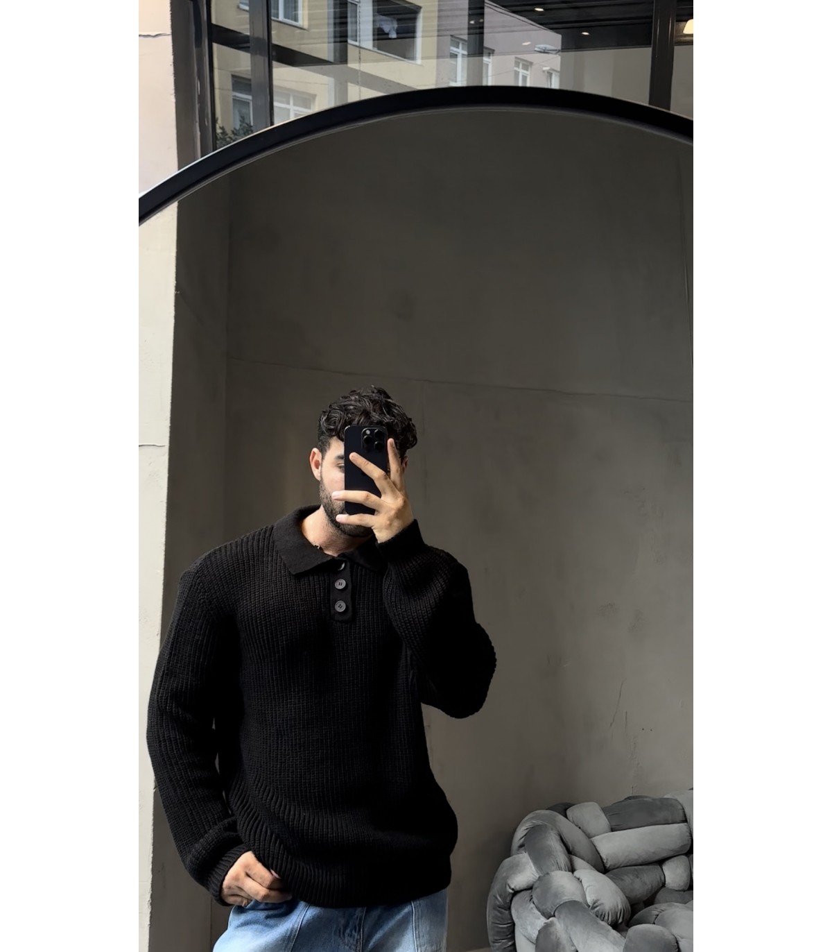DÜĞME DETAYLI OVERSİZE POLO YAKA KAZAK