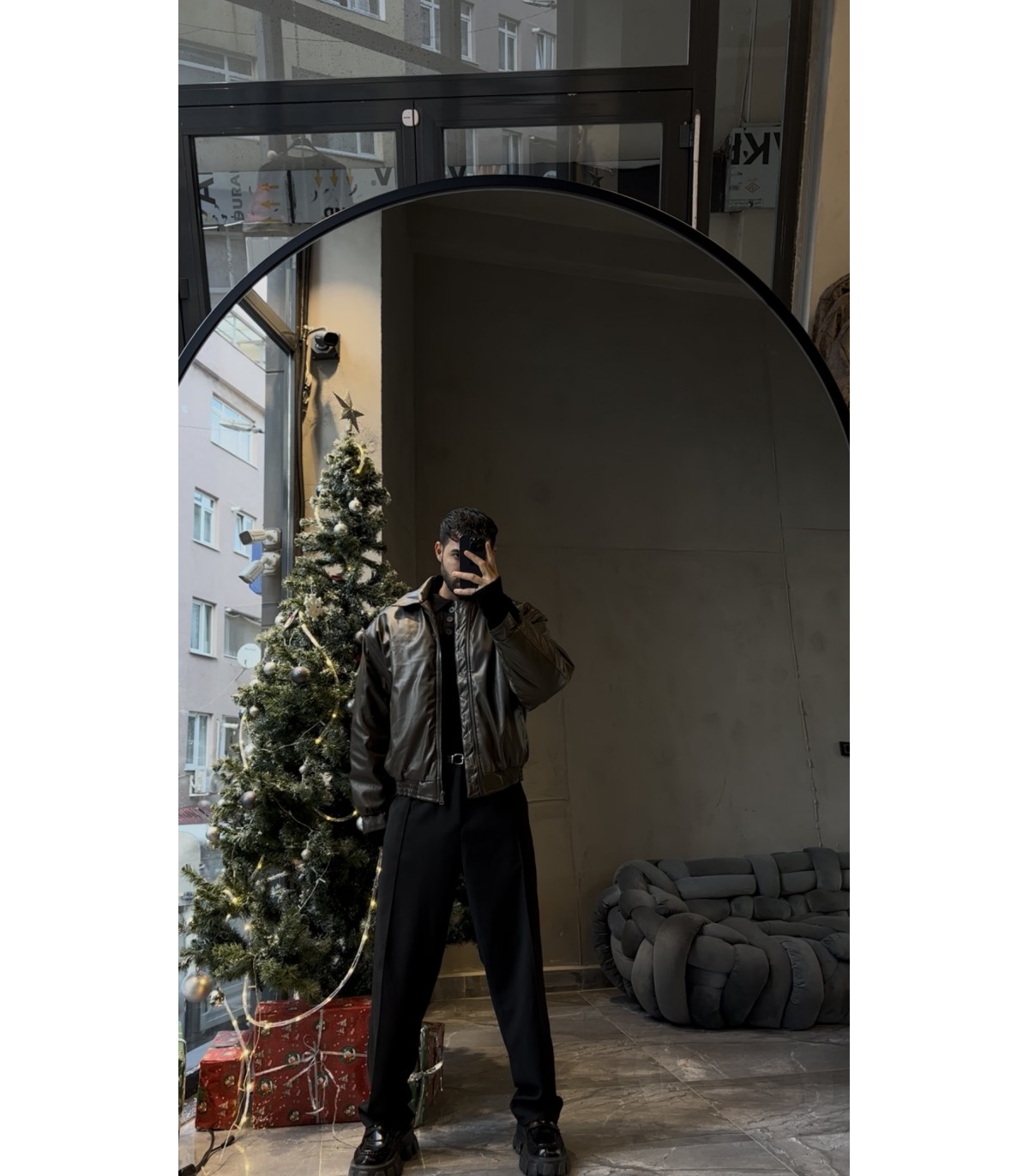 Oversize bomber yeni sezon arka yazı detaylı deri ceket