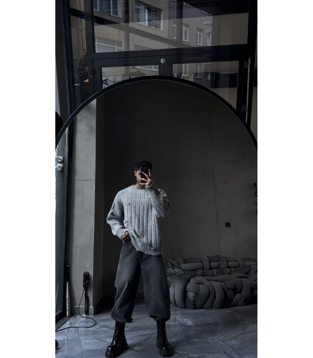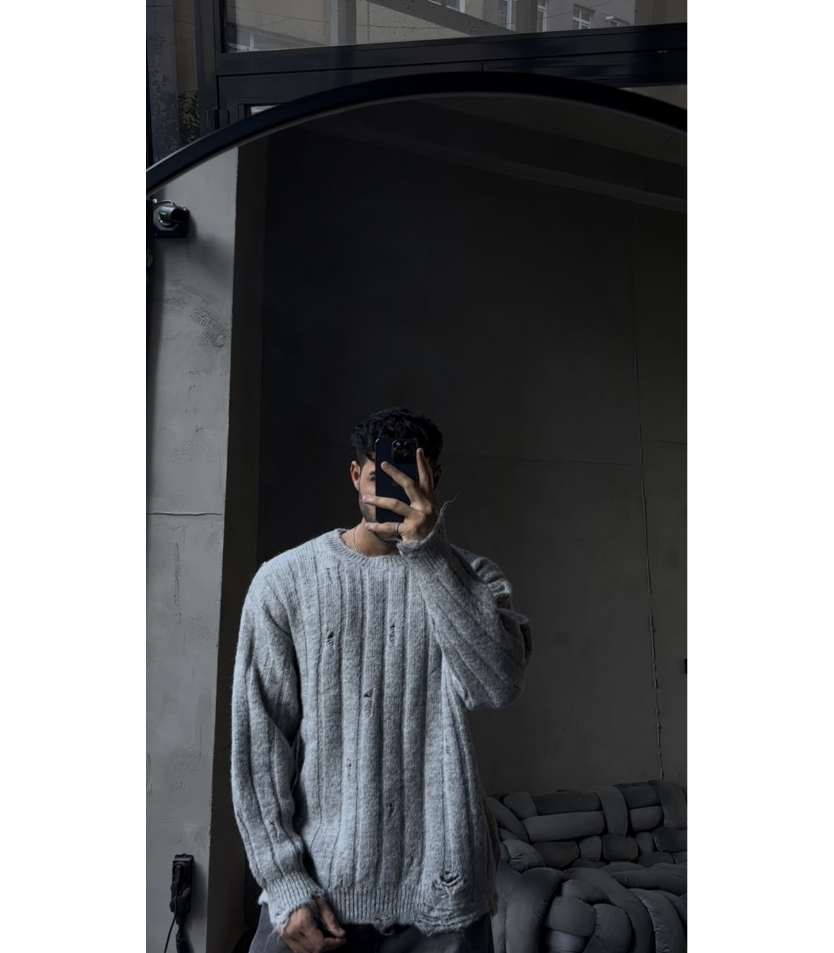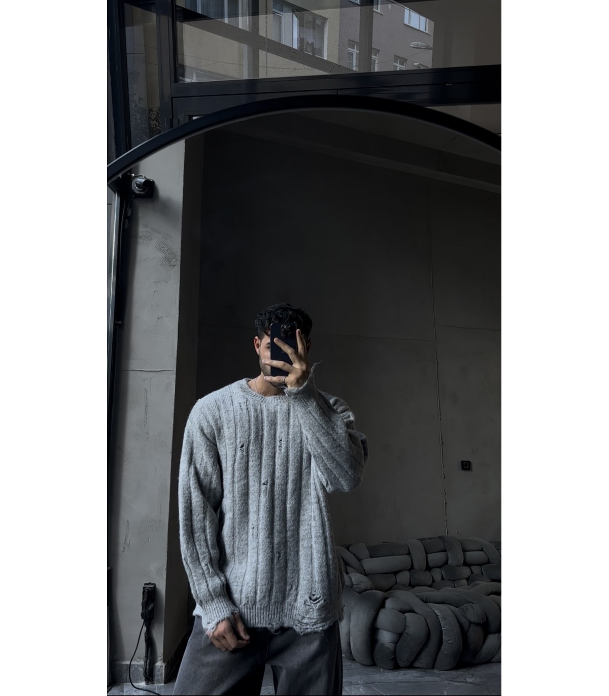 OVERSİZE ÖZEL YIRTMAC DETAYLI BİSİKLET YAKA KAZAK