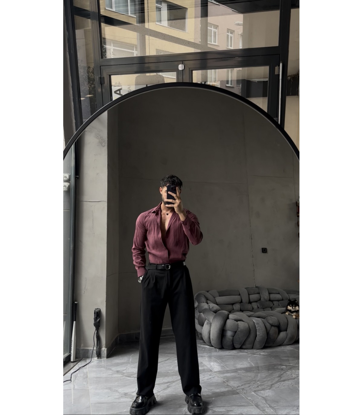 ÖZEL DESEN DETAYLI TENSEL KUMAŞ GÖMLEK