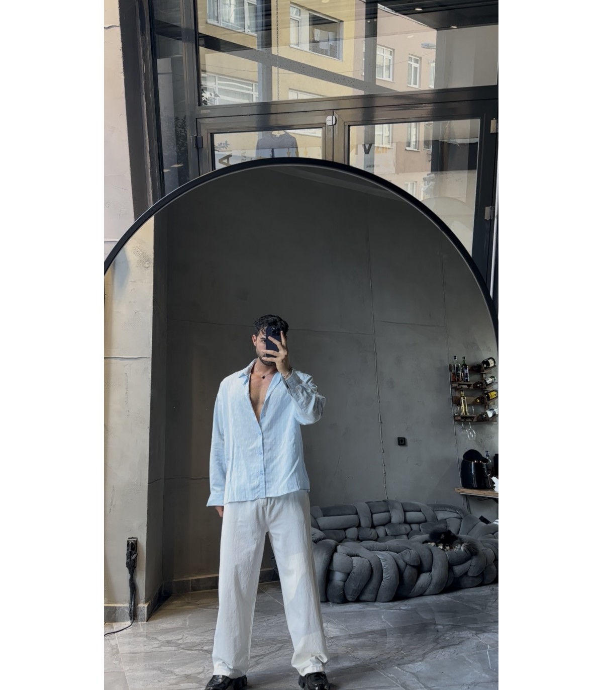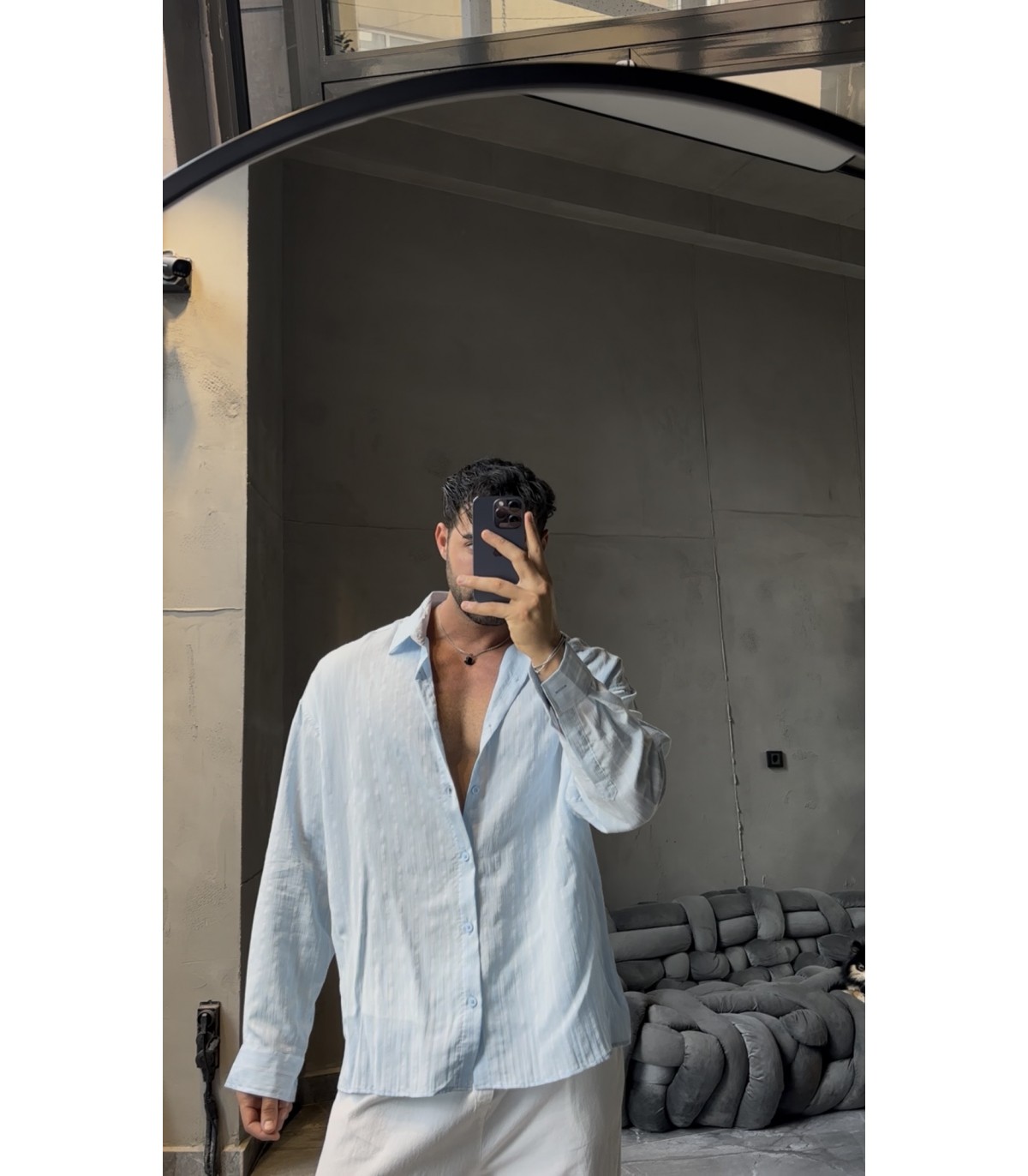 İNCE ÇİZGİ DETAYLI OVERSİZE GÖMLEK